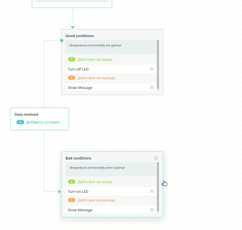 Sending messages allows you to keep track of the current changes occurring during the logic execution. If you add this command to enter any state, the system will send the necessary notification when the object enters this state. notification. It will inform that a certain event has occurred, that the object is now in that state. As a result. regular sending of notifications, you will always be aware of the status of the control process. of the control process.