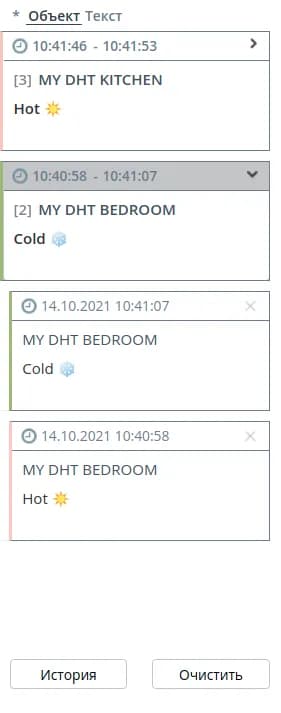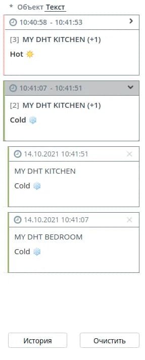 - Текст - сообщения группируются по содержимому. Уведомления образуют отдельную группу в том случае, если обладают одинаковым текстом. После названия объекта в круглых скобках отображается количество объектов, по которым пришли уведомления с таким же текстом.