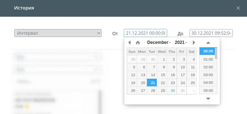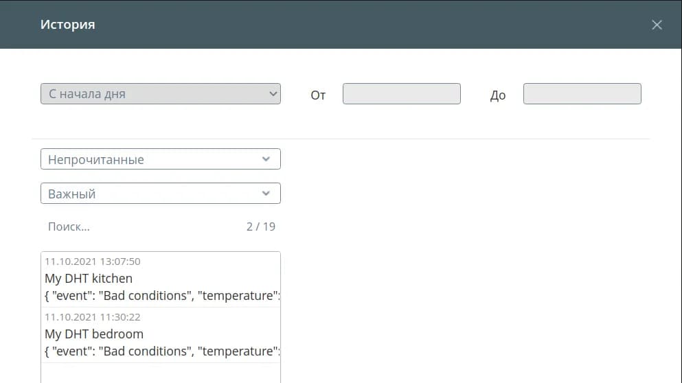 Все полученные сообщения сохраняются в истории. В первую очередь укажите период, за который необходимо отобразить оповещения: