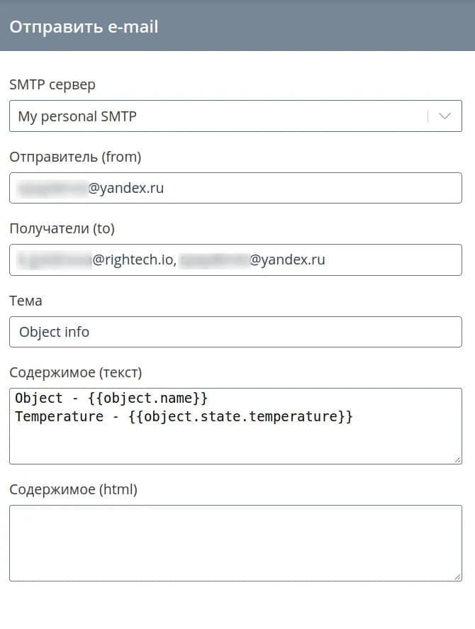 В тексте сообщения вместо {{object.state.temperature}} будет подставлено текущее