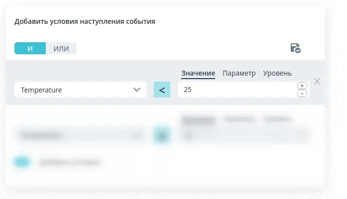 Выберите операцию сравнения и после формирования условия нажмите кнопку сохранения в правом верхнем углу окна добавления условий.