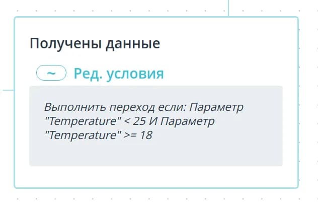 В одном переходе можно задать от одного до четырех условий. Их взаимодействие между собой сконфигурируйте с помощью кнопок И и ИЛИ. При выборе И для выполнения перехода должны быть выполнены все условия, при выборе ИЛИ - любое из указанных.