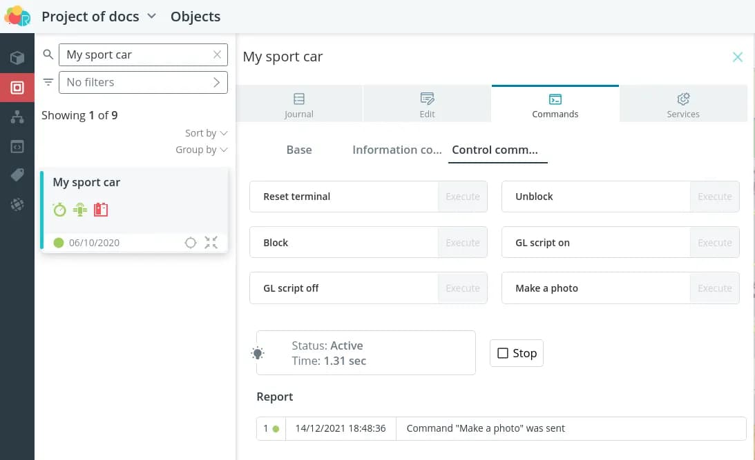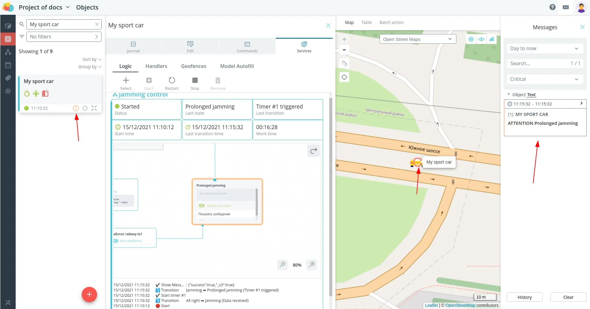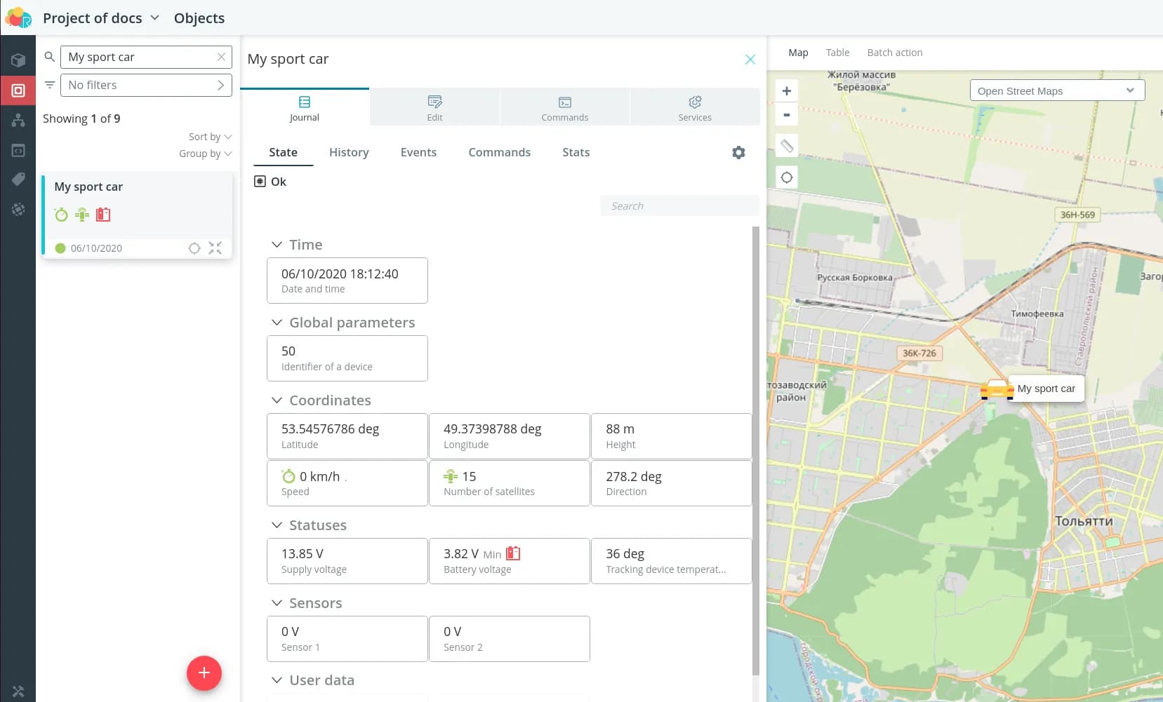 Verify that after saving the settings, data from the device is sent and are displayed in the interface. After receiving the coordinate packet, the object should be displayed on the map.