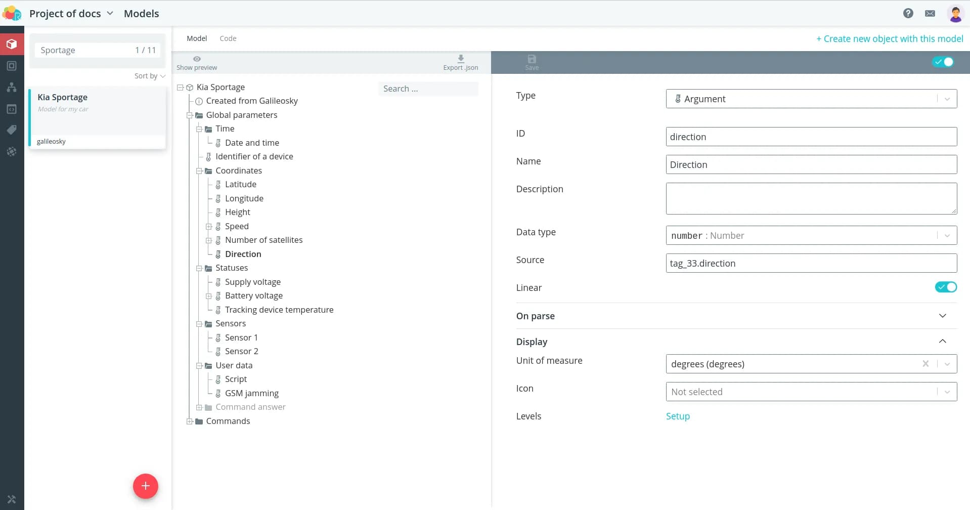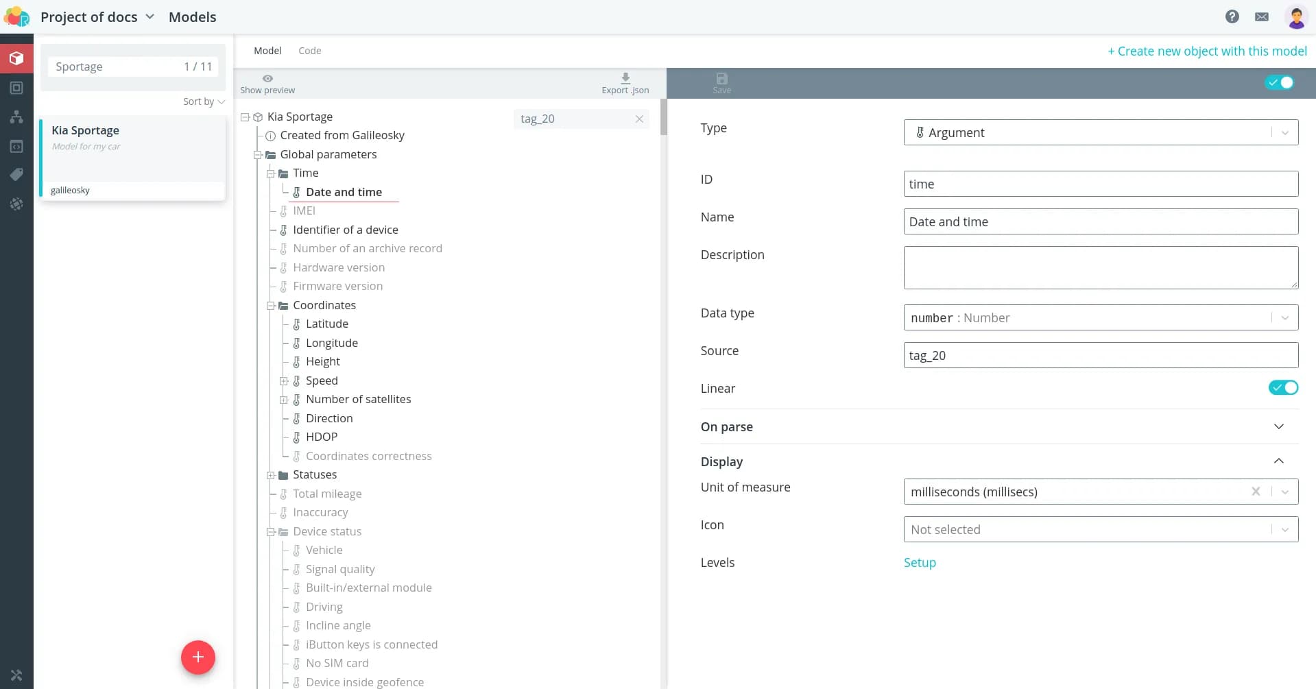 To connect the vehicle terminal to the platform, create a model for it. Galileosky.