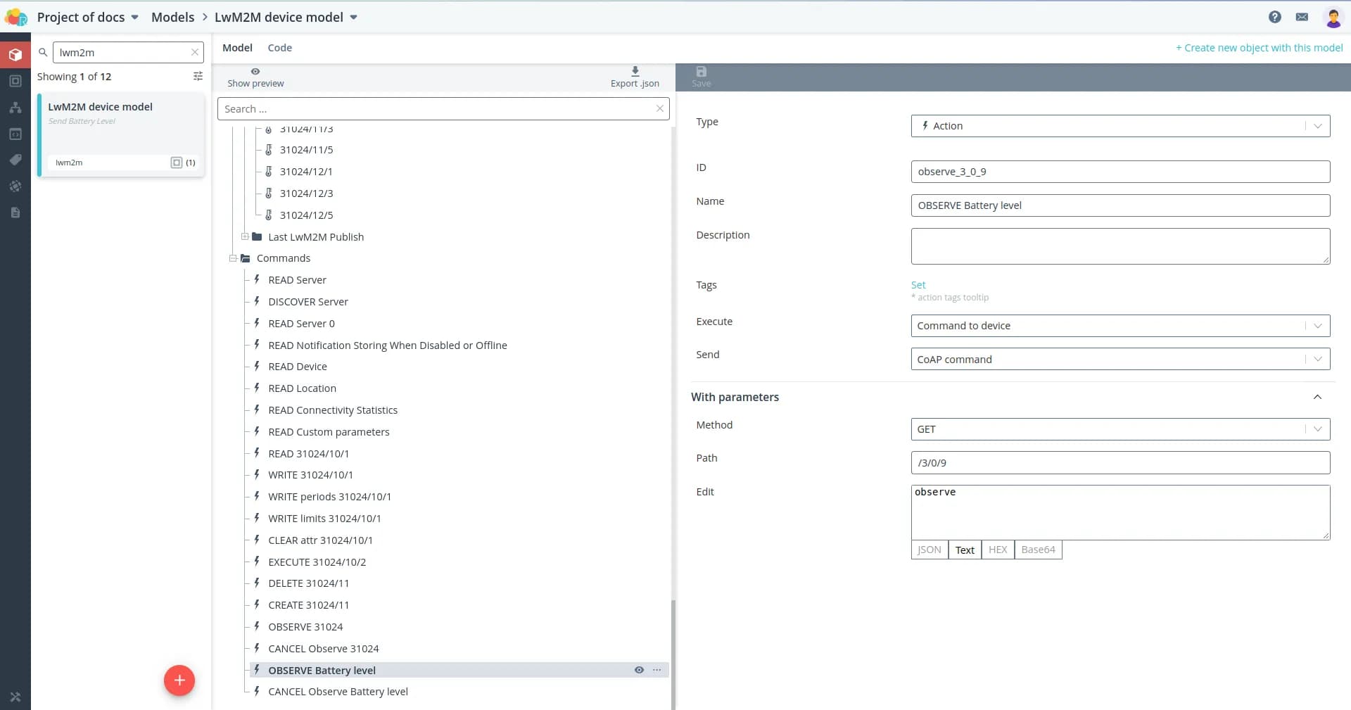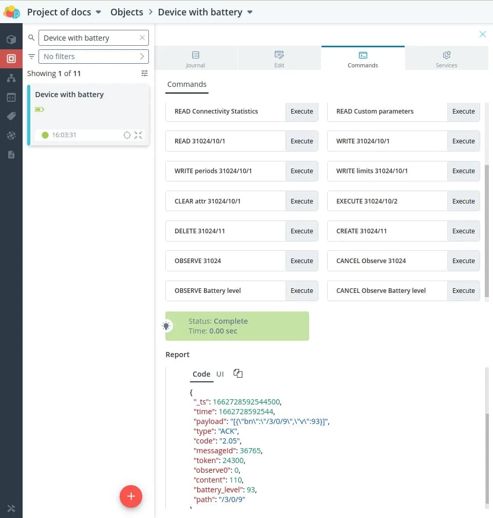 Also, the template model pre-defines a useful Observe command for this resource. Setting a constant observe will allow us to learn about changes in the in the battery charge as soon as it happens, otherwise we would have to send the Read command all the time. to send a Read command all the time.