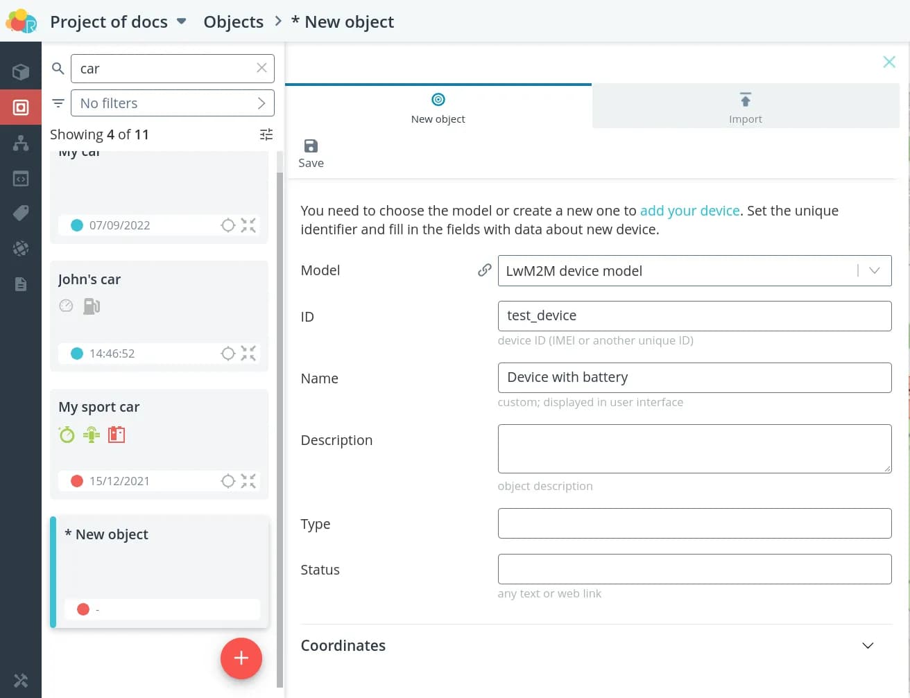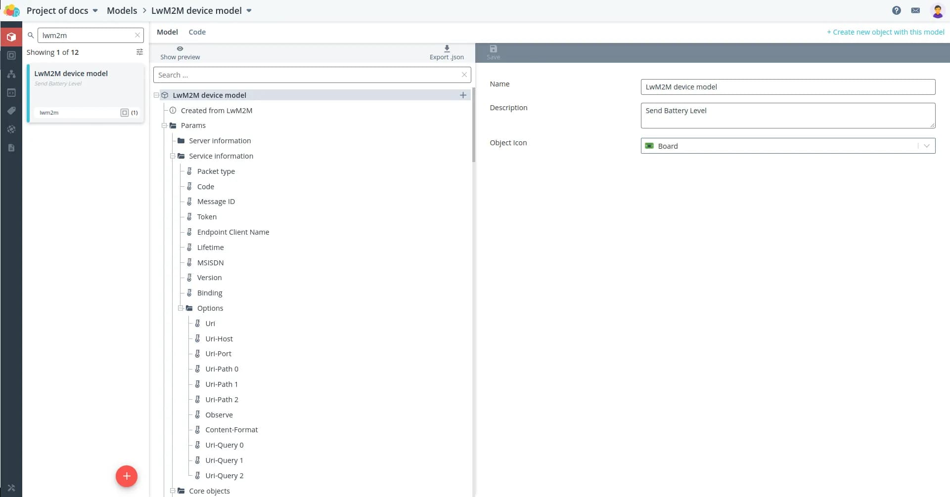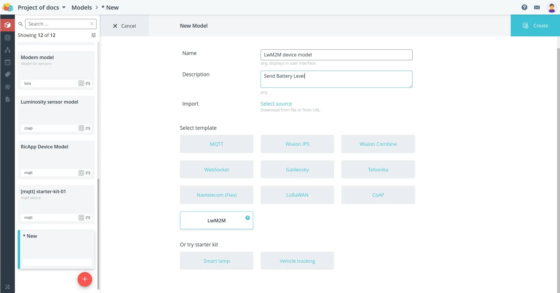 To connect the device to the platform, create a LwM2M model for it.