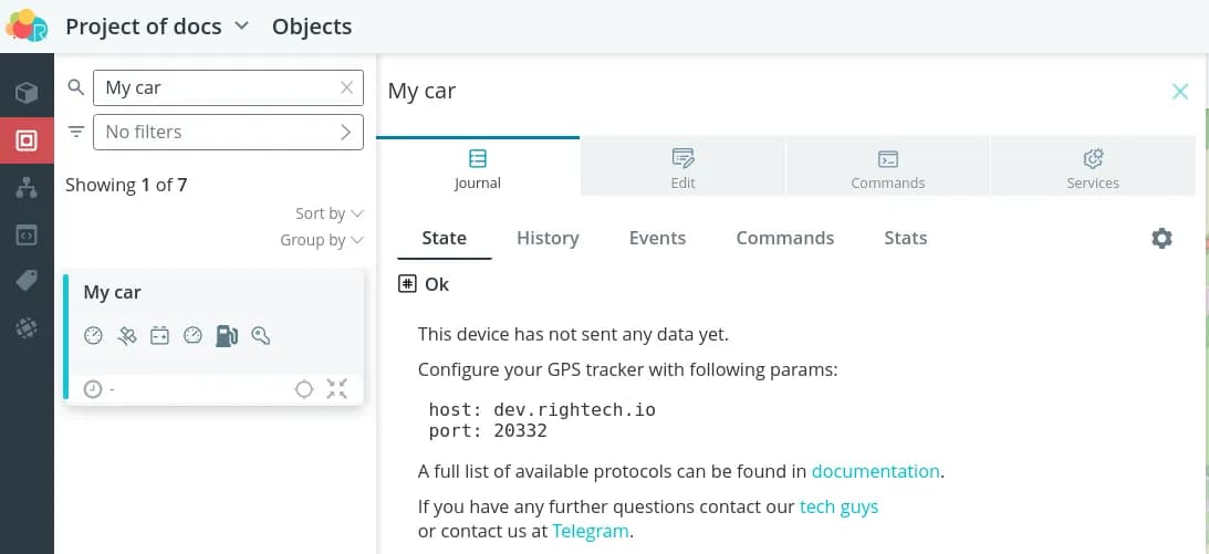 Make sure that after saving the settings, the data from the device is sent and are displayed in the interface. After receiving the coordinate packet, the object should be displayed on the map.