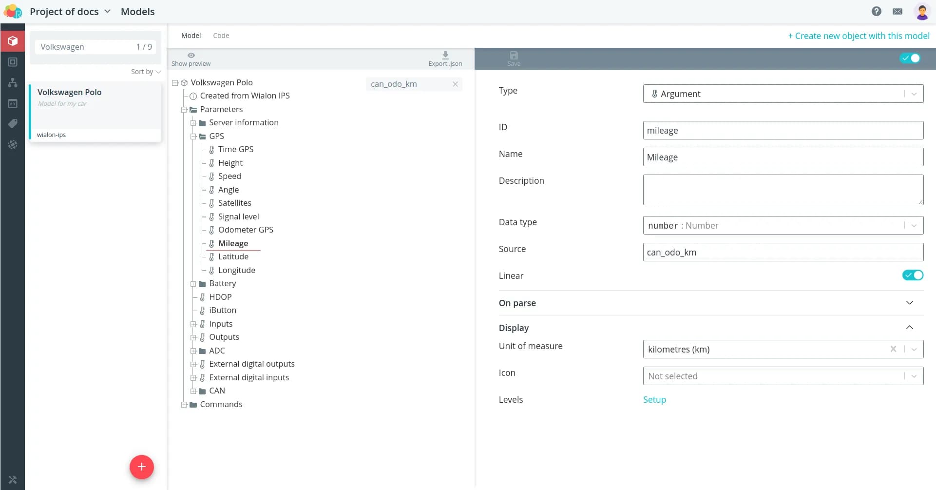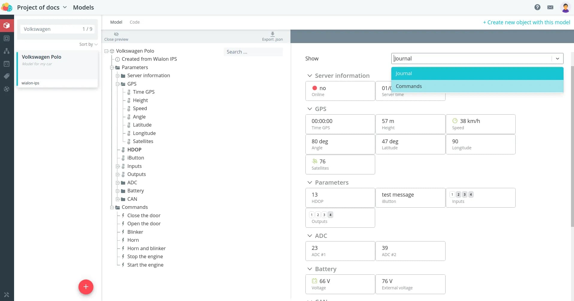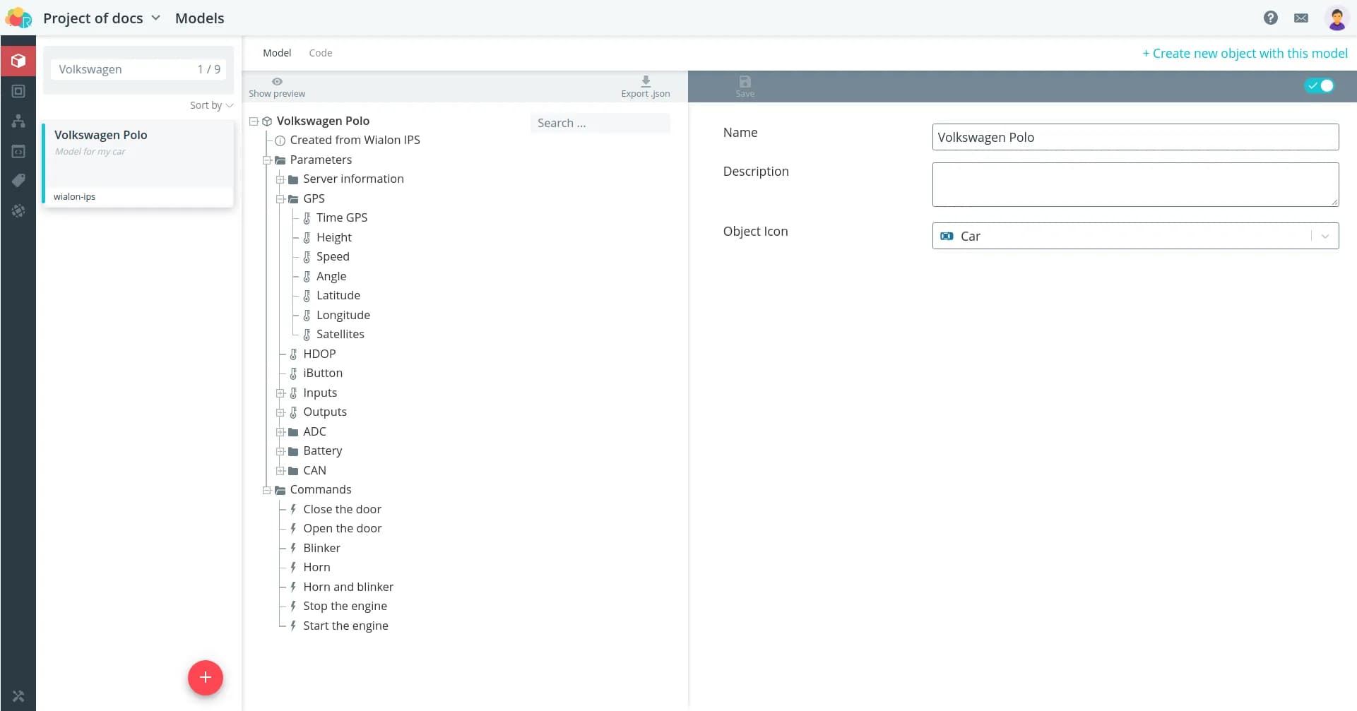 To connect the vehicle unit to the platform, create a Wialon model for it. IPS.