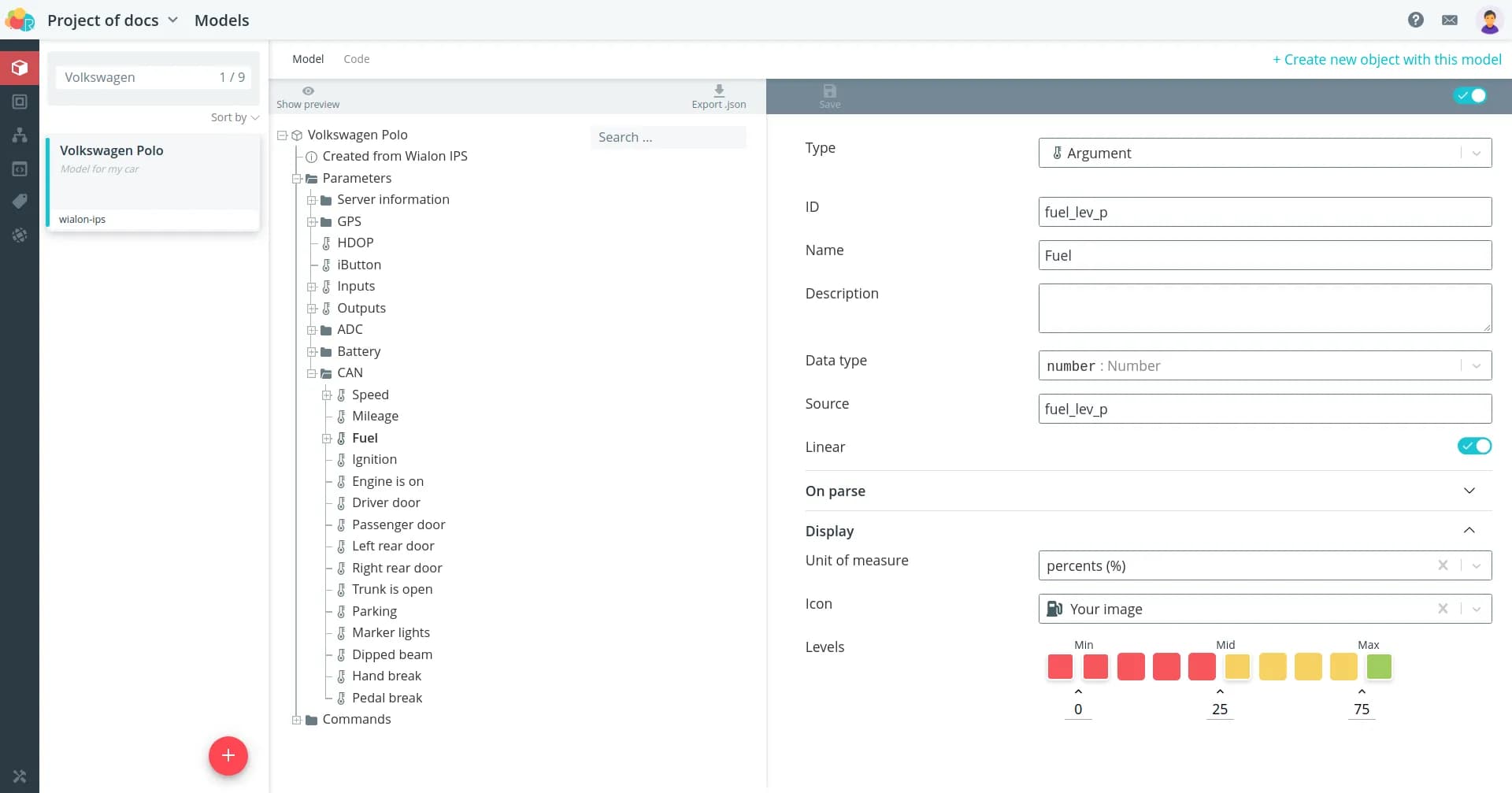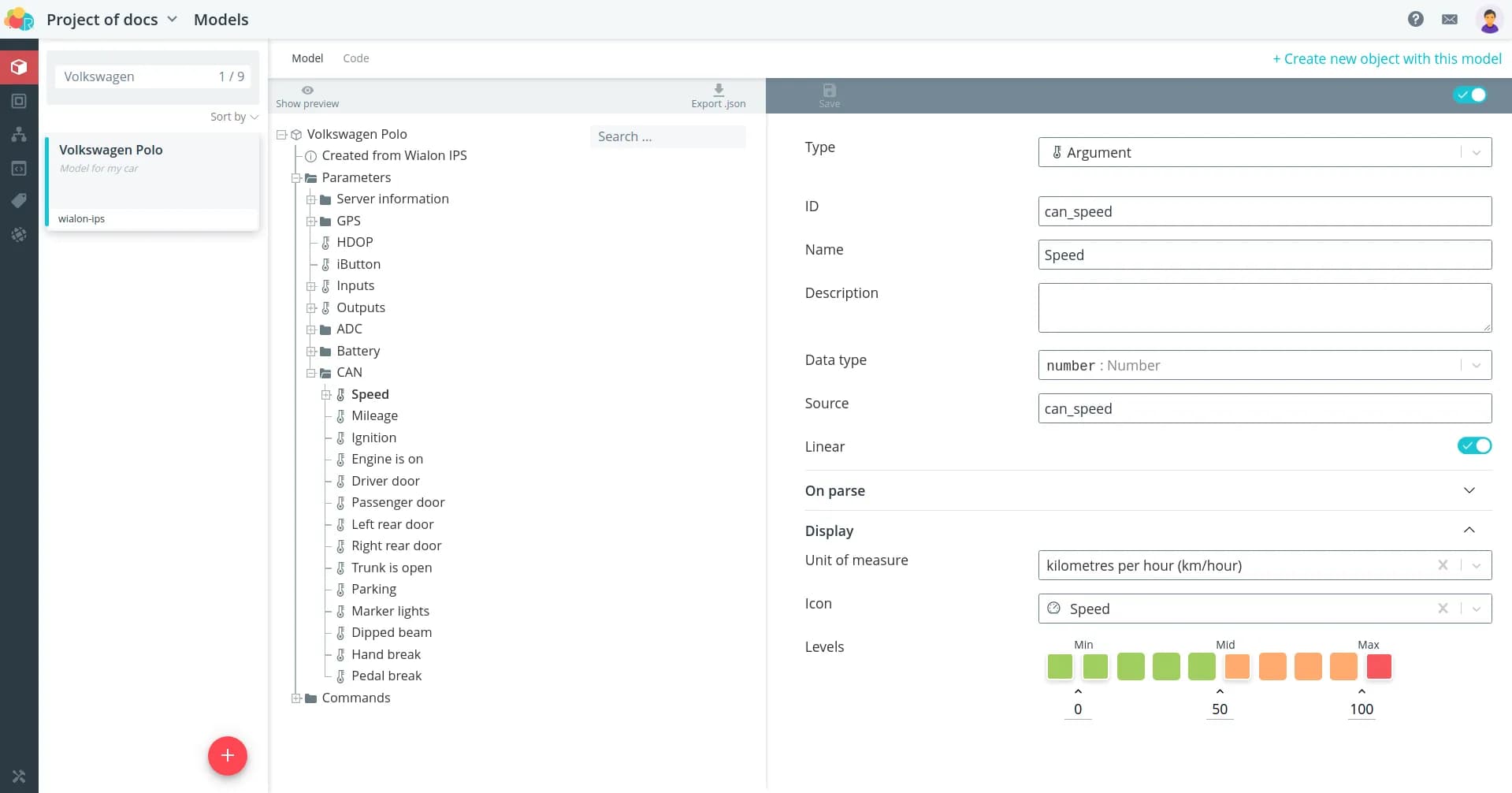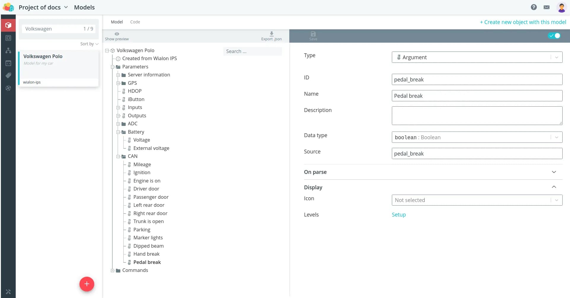 To connect the vehicle unit to the platform, create a Wialon model for it. IPS.
