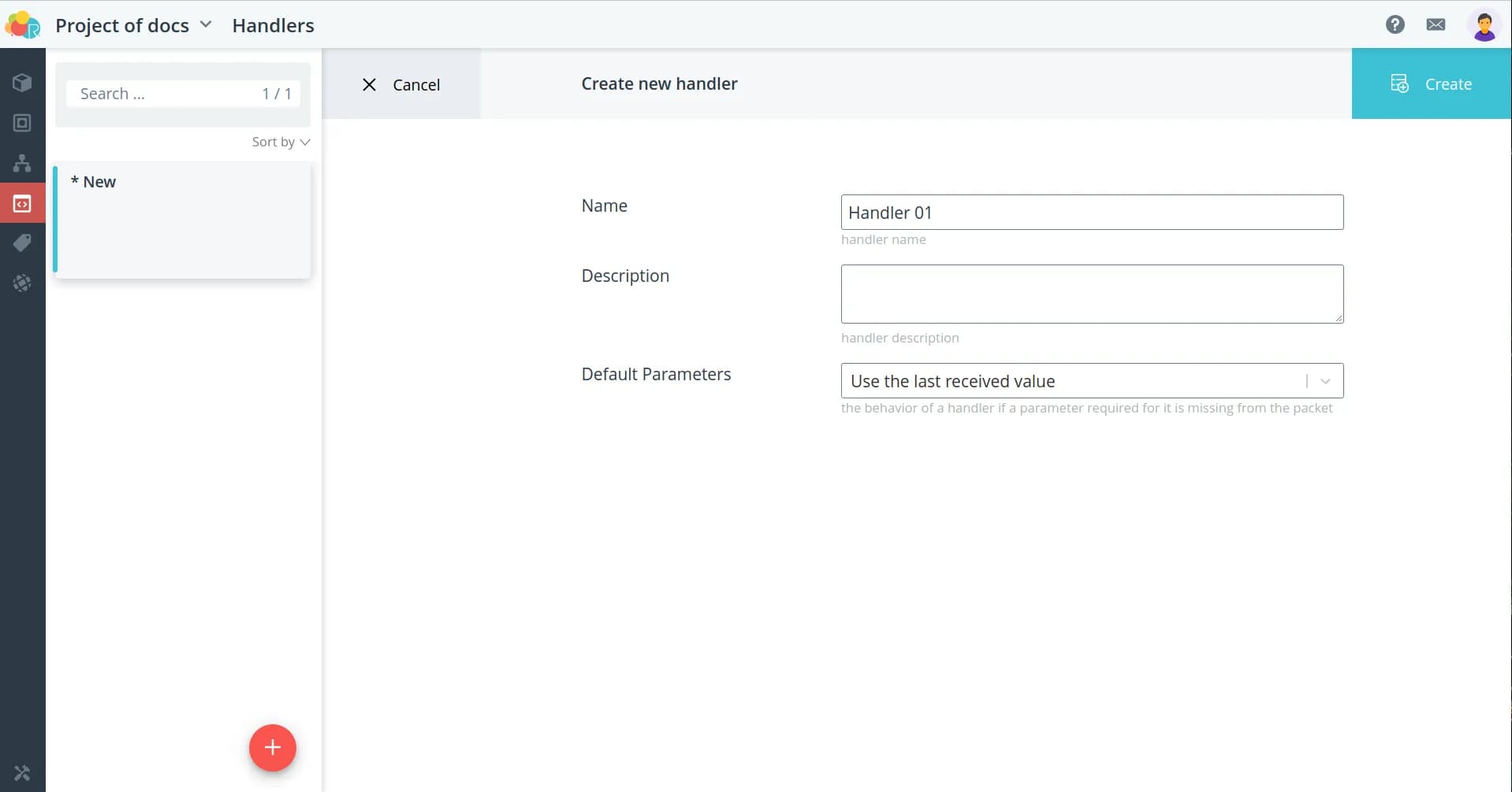 To create a new handler, go to the Handlers tab. Add handler by clicking on the plus sign.