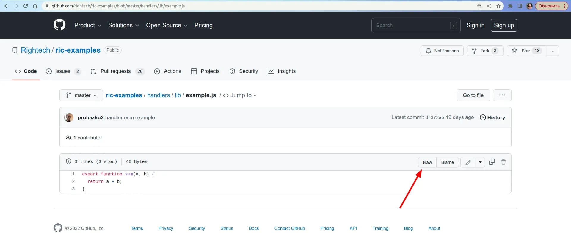 }Important: Note that when importing modules from the GitHub repository. you must use their "raw" version, because otherwise the GitHub server will HTML page for viewing, but not the content of the file itself. To click the Raw button in the GitHub interface to get the desired link address.