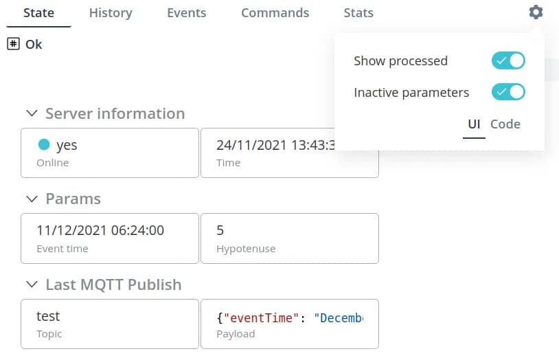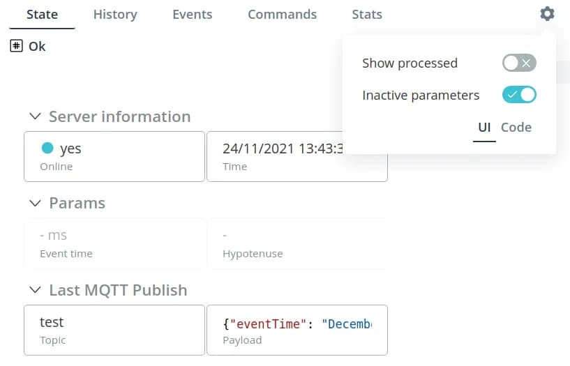 After the handler is started, all data starts to be divided into two streams: processed and unprocessed. To view them, click on the gear in the upper right corner of the object interface and select the necessary option in the switch.