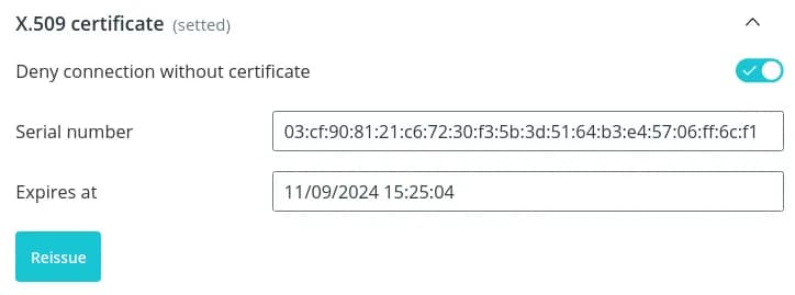 To further protect the data transfer process, issue an X.509 certificate.