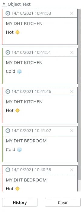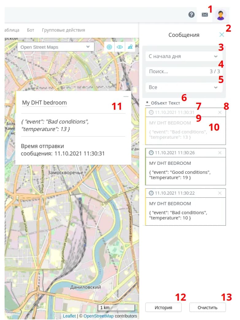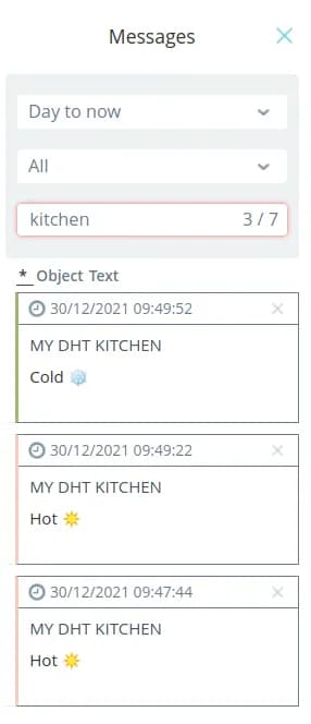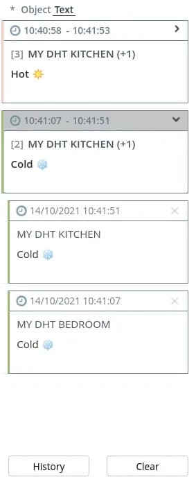 - Text - messages are grouped by content. Notifications form a separate group if they have the same text. After after the name of the object, the number of objects with the same text is displayed in parentheses. notifications with the same text are displayed in parentheses after the object name.