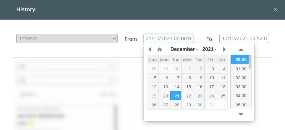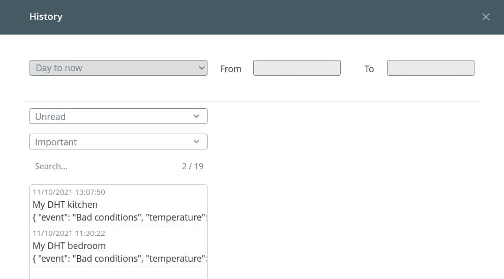 All received messages are saved in the history. First of all, specify the period, for which you want to display the notifications: