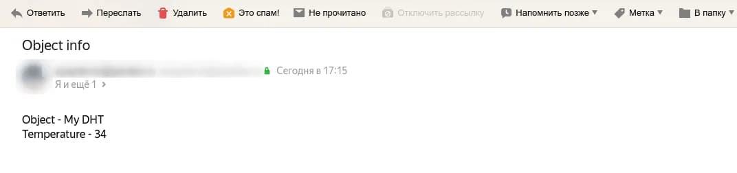 In the text of the message, instead of {{{object.state.temperature}} the current
