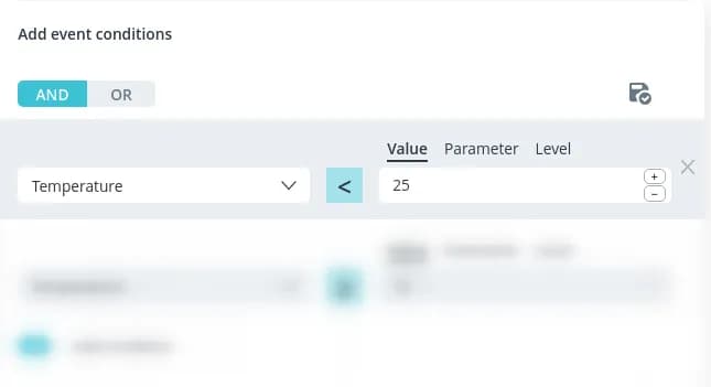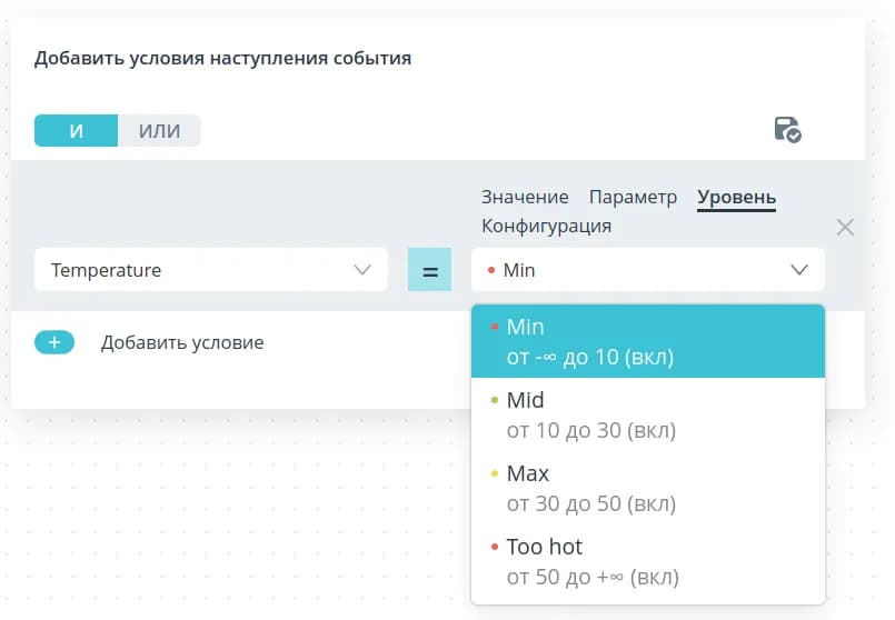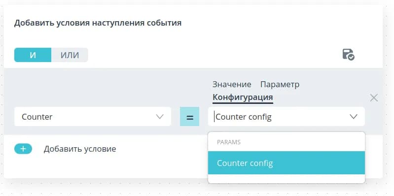 To form the condition, select the model parameter, the value of which you want to check, from the drop-down list. to check from the drop-down list.