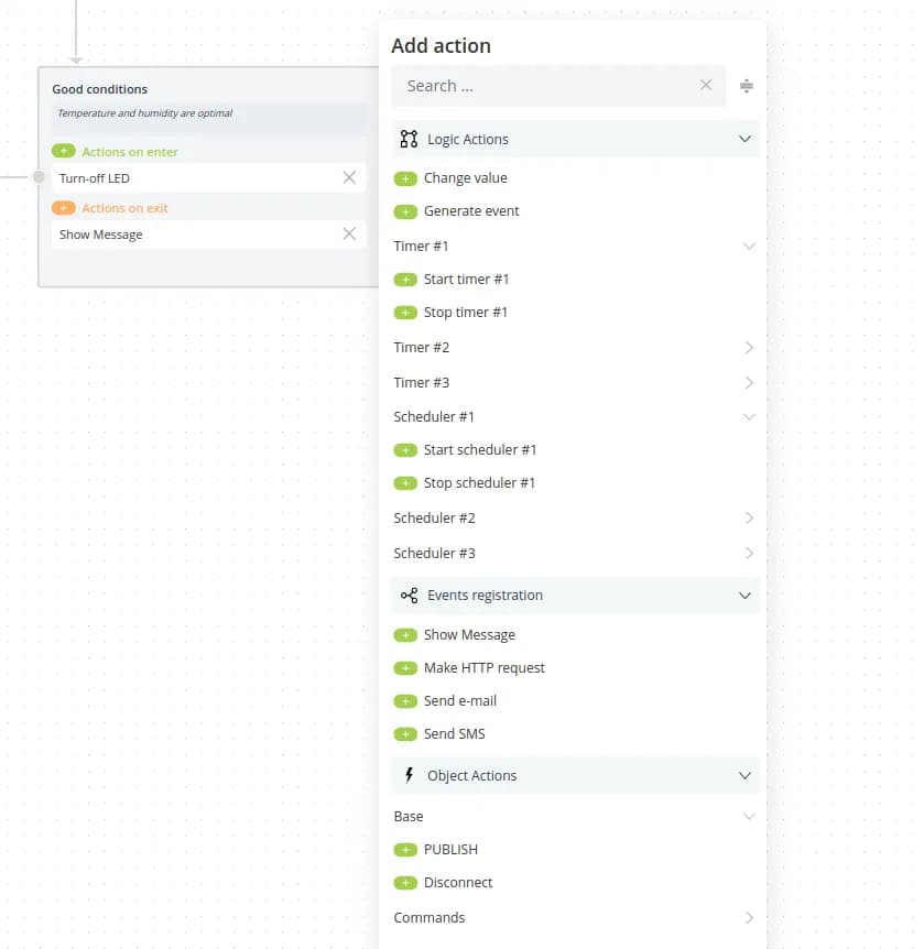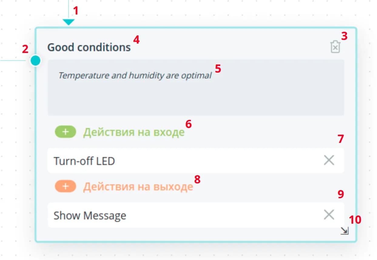 Sending messages allows you to keep track of the current changes occurring during the logic execution. If you add this command to enter any state, the system will send the necessary notification when the object enters this state. notification. It will inform that a certain event has occurred, that the object is now in that state. As a result. regular sending of notifications, you will always be aware of the status of the control process. of the control process.