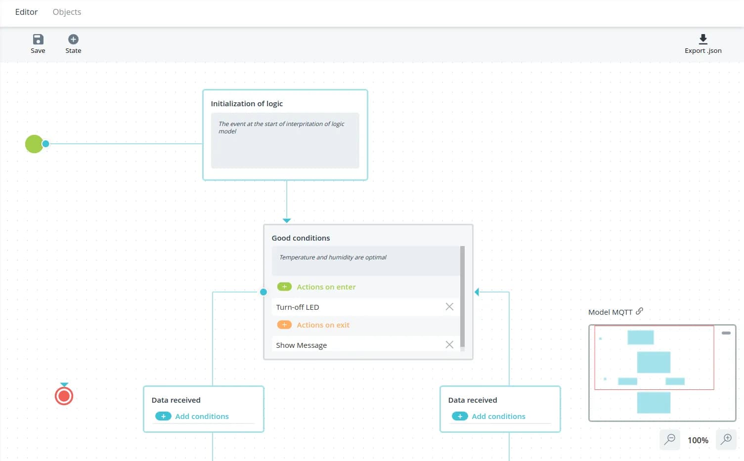 Click on the Export .json button to export the automaton.