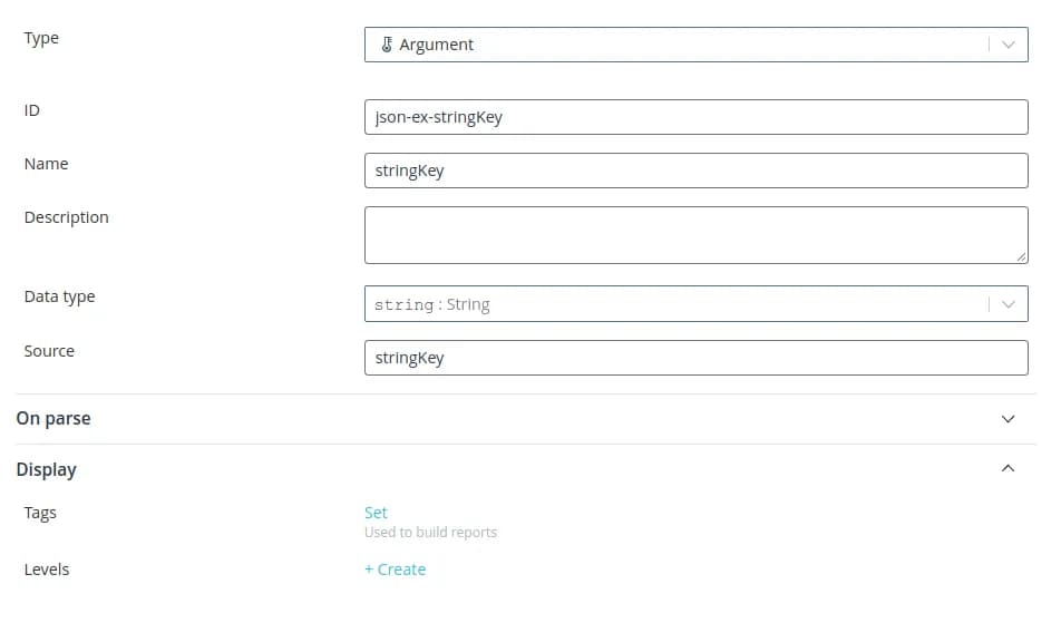 - Create an argument with the Object data type, in the source specify the path you expect the data to follow - in this case