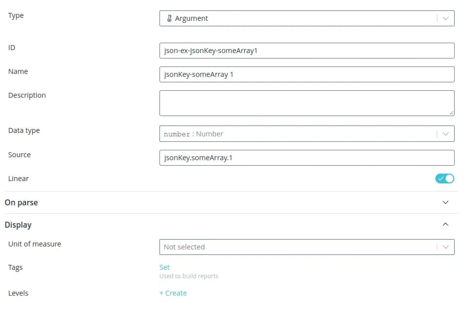 }In order to parse such a data packet by model, in the Source field specify the key from JSON of the field you are interested in.