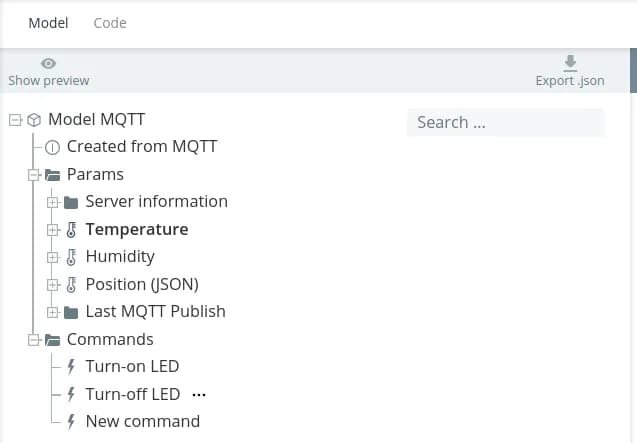 In the platform interface it is possible to export and import entities in JSON format. This allows you to easily share your own developments, get the opinion of the community opinion about your ideas and use ready-made solutions of other users. The ability to import/export models is especially helpful when transferring your own realization of a task to another person. It is very convenient to share program code in the form of in the form of, for example, an Arduino sketch and an object model in the form of a JSON file.