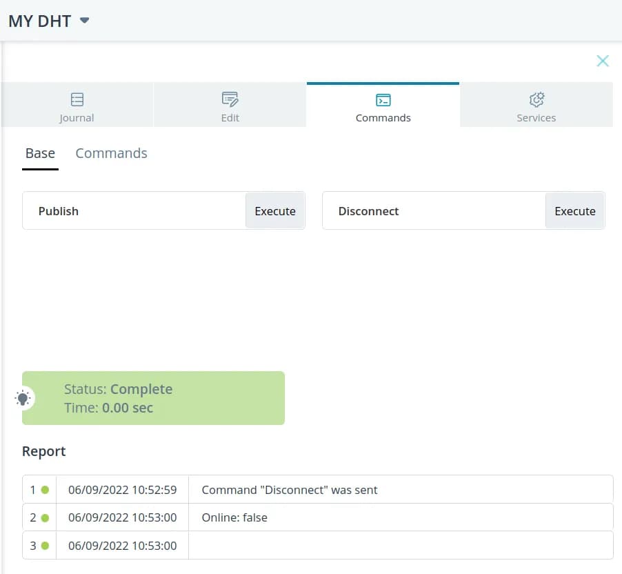 In addition to the commands you have created, there is one basic command present in in all models is Disconnect. It allows you to forcibly to forcibly disconnect from the device. Once this command is sent, the target will go offline until the device reconnects.
