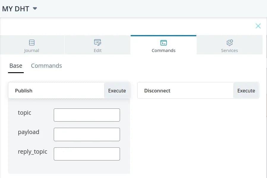 The rest of the basic commands are protocol-specific command patterns. For example, in the case of MQTT, there is a basic command Publish, when you click on it, a form will appear to fill in the command parameters. a form will appear to fill in the command parameters.