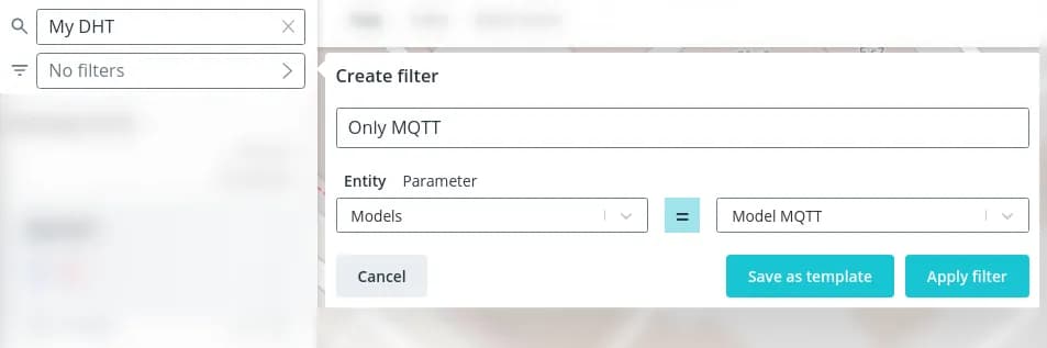 - Use specific entities to filter objects by a specific model, automaton, handler, or geofence;