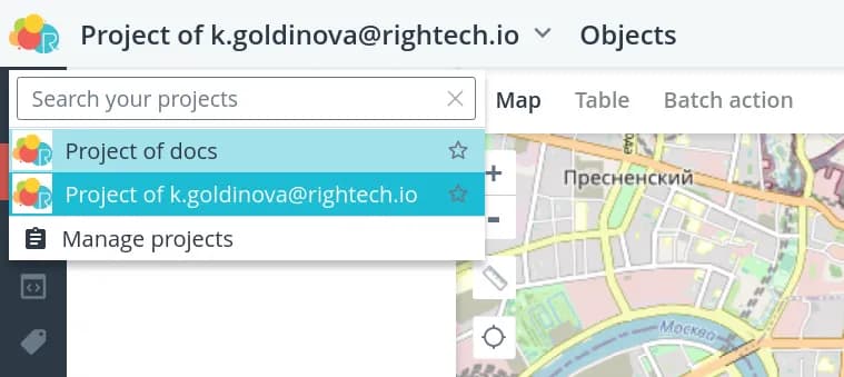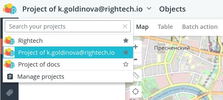 When you first enter the platform, you will see a single empty project with a name in the format of Project of <login>.