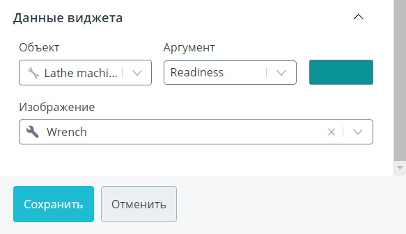 Настройка этих трех виджетов одинакова. Выберите один интересующий вас объект. Из списка параметров этого объекта определите тот аргумент, текущее значение которого будет использоваться в качестве источника данных. В списке возможных для выбора параметров доступны только те, у которых в модели указан тип данных Число. Вы можете задать свой цвет заполнения на виджете, либо выберите Использовать цвета из уровней, тогда значение будет окрашено в цвет, соответствующий интервалу. Если у выбранного аргумента еще не заданы уровни в модели или вам хочется изменить их цвет, нажмите кнопку Перейти в модель и настроить уровни. После сохранения новых уровней в модели цвет значения на виджете также обновится.