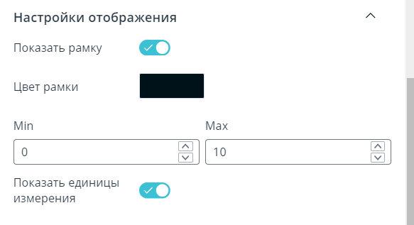 | Показать единицы измерения | Линейная диаграмма, Гистограмма, Круговая диаграмма, Спидометр, Столбчатая диаграмма, Счетчик, Батарея, Колба, Термометр | Показать или скрыть единицы измерения для данных виджета |
