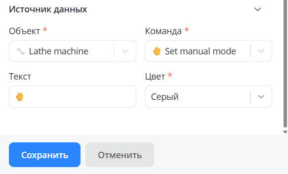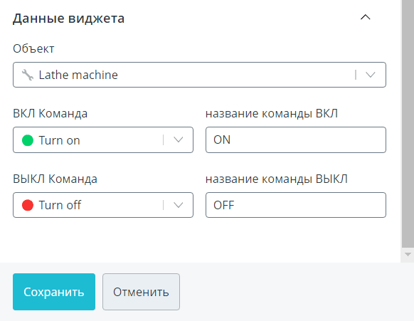 Каждый виджет напрямую связан с параметрами и командами конкретных объектов. Выбор источников данных и настройка их отображения происходит в разделе Данные виджета и зависит от типа виджета.