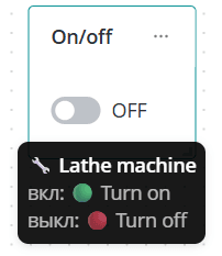 Выберите один интересующий вас объект. Из списка команд этого объекта определите команды, которые будут отправляться при включении и выключении переключателя. Вы можете задать названия состояний, которые будут отображаться рядом с переключателем после отправки соответствующей команды.