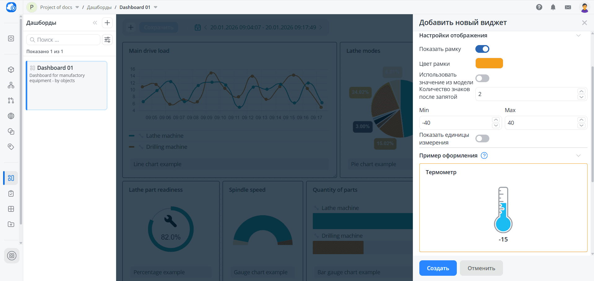 В дашборде можно создать не более 15 виджетов.