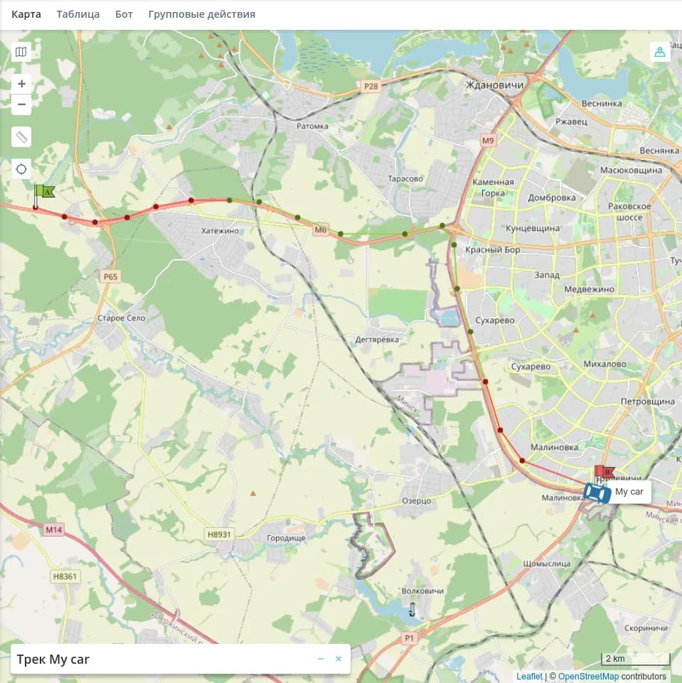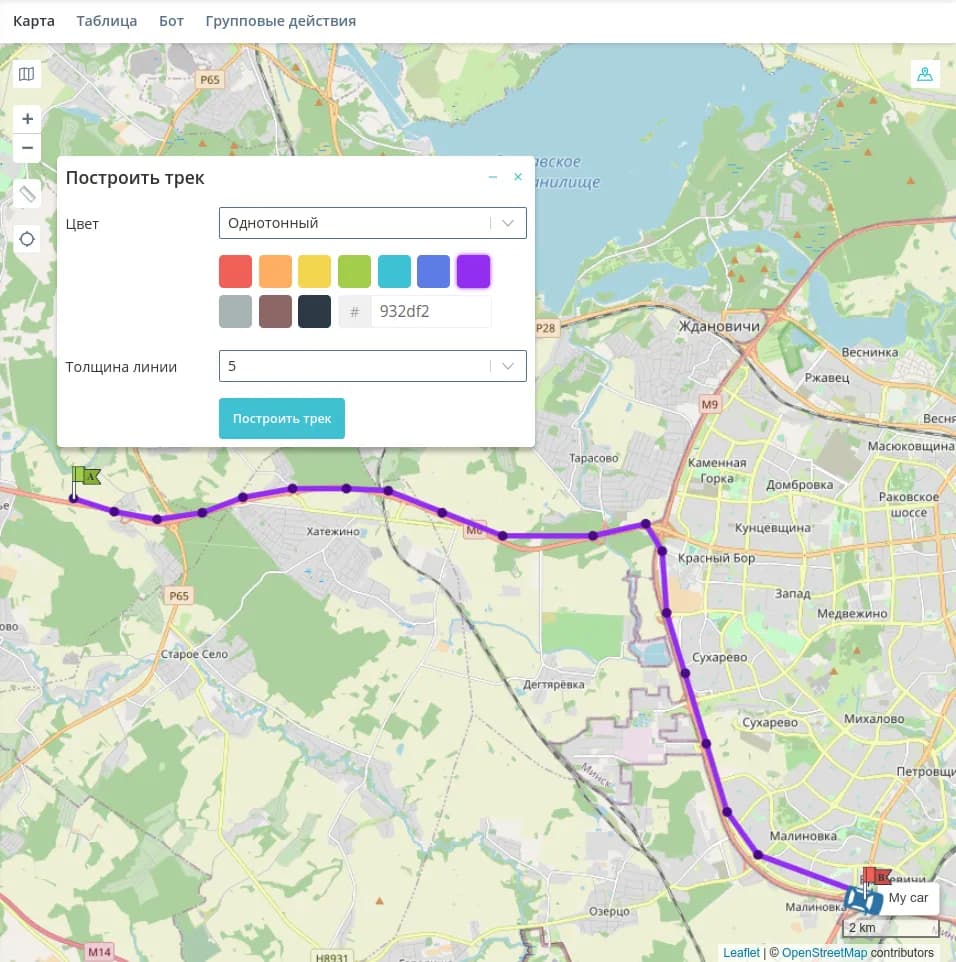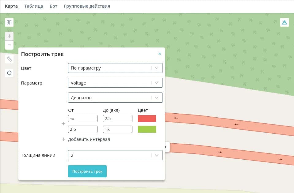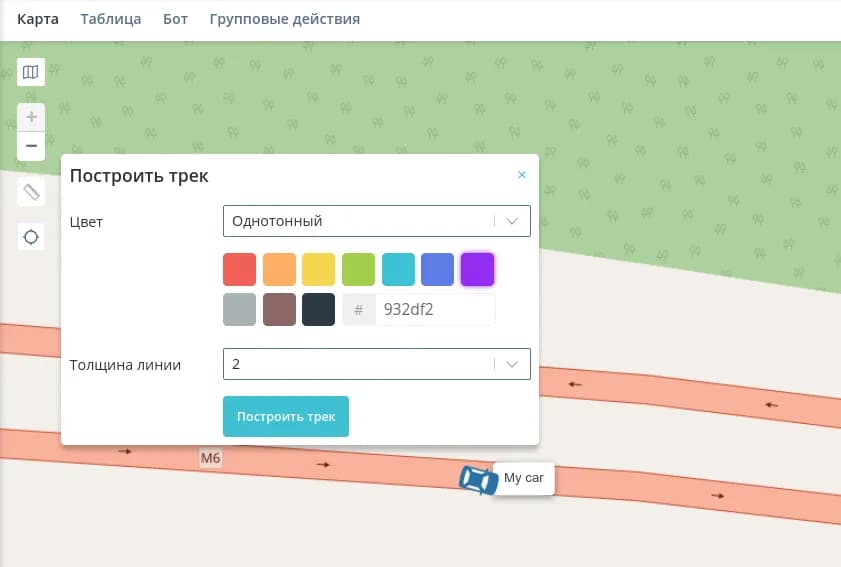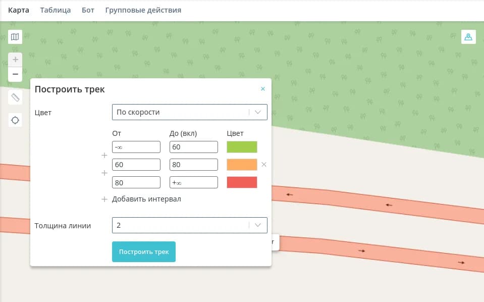 - Построить трек - построение трека за выбранный период;