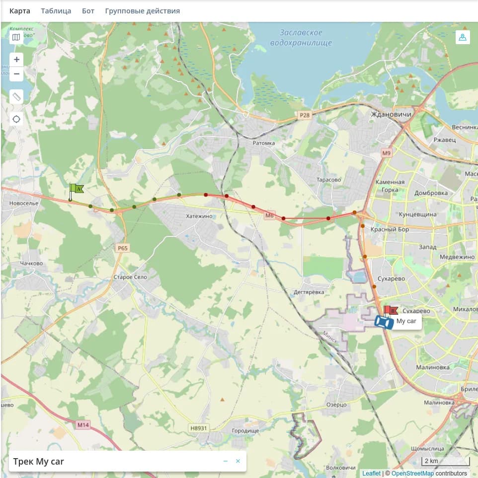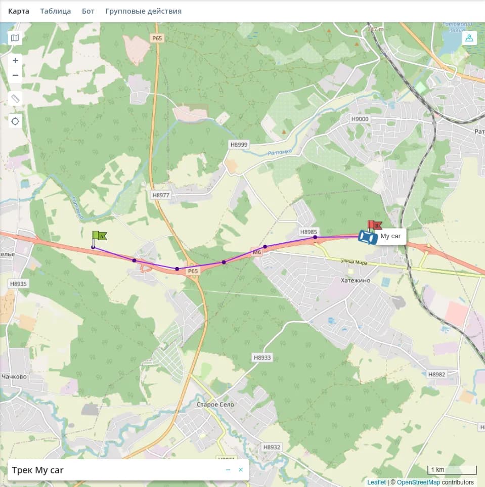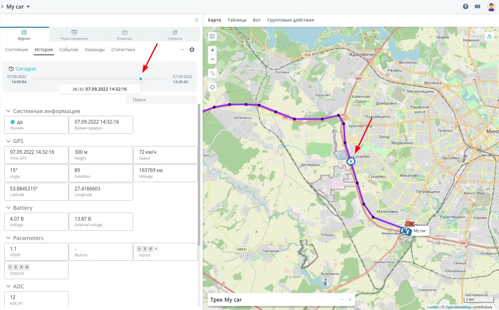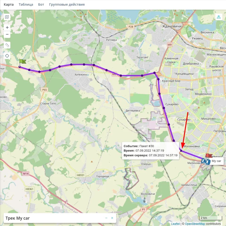 Кликните на точку трека, чтобы перейти к этому пакету данных в истории.