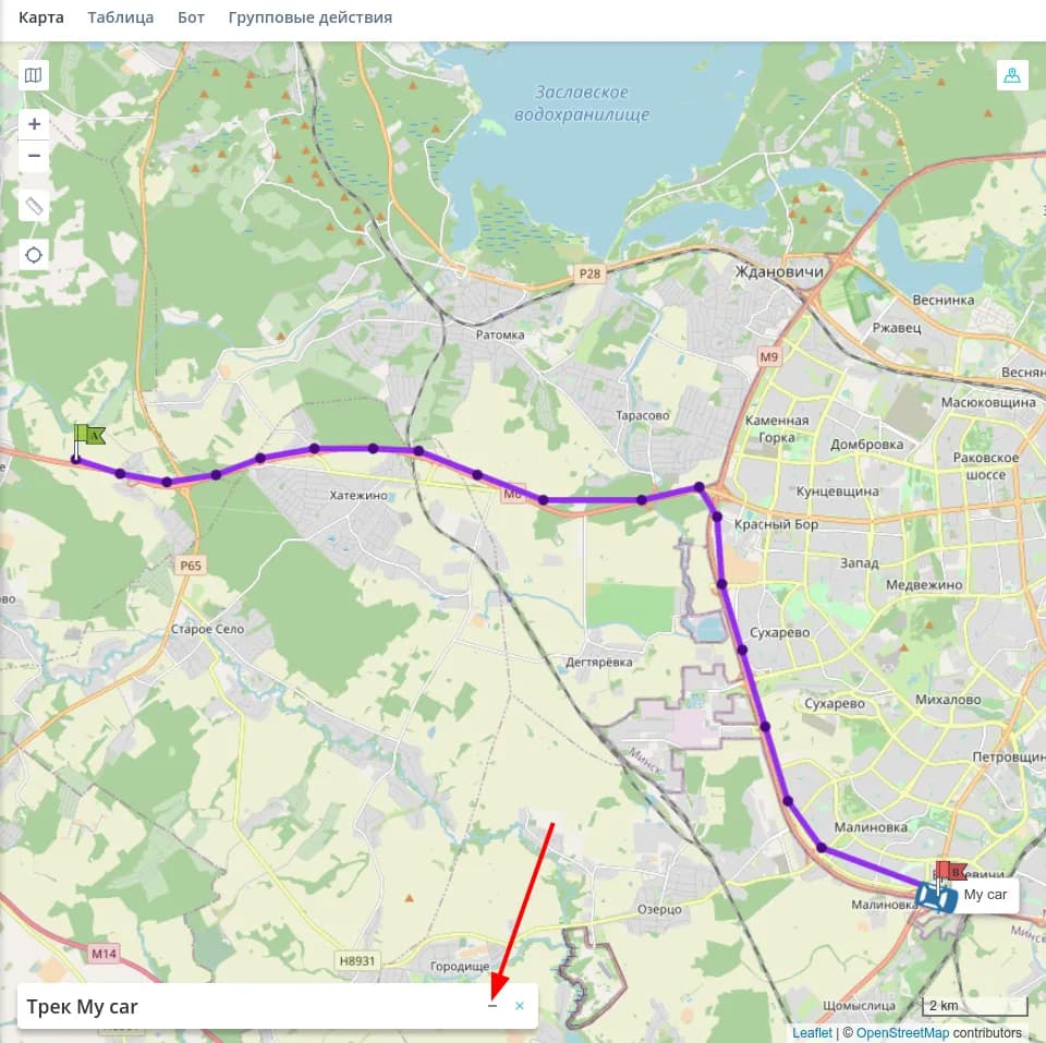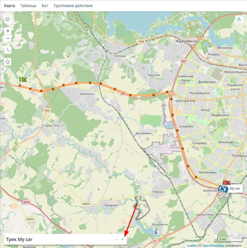 Закончив работу с треком, нажмите на крестик на плашке построение трека, чтобы удалить трек с карты.