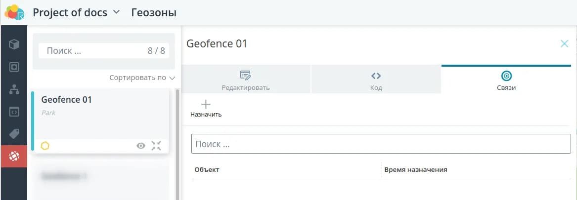 Для того чтобы выбрать объекты, на которые необходимо добавить геозону, перейдите на вкладку Связи.