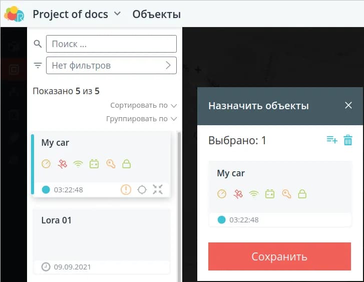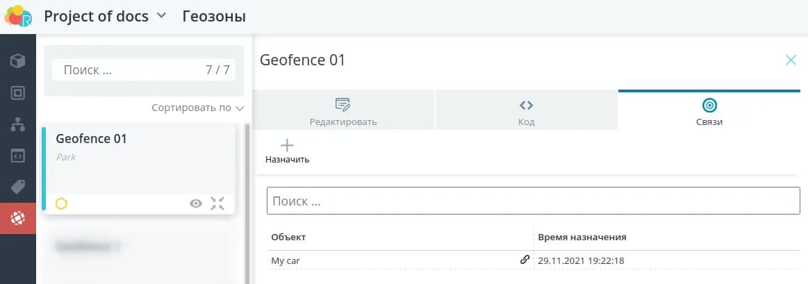 Нажмите на кнопку Сохранить, геозона назначится на выбранные объекты.
