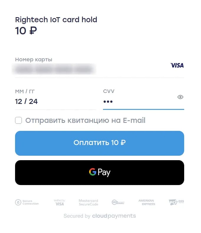 После нажатия на кнопку оплаты и ее подтверждения со счета карты спишется и вернется 10 рублей.