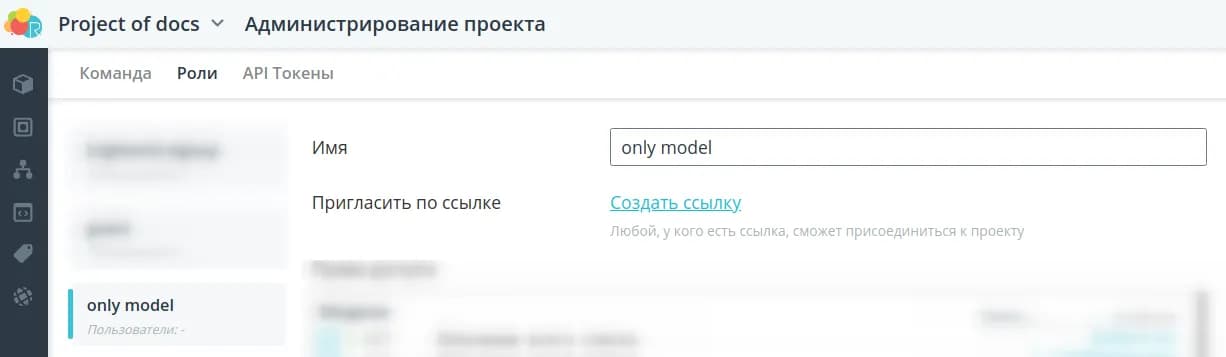 Нажмите кнопку Сохранить. Теперь данную роль вы можете использовать для приглашения новых пользователей в разделе Команда или сгенерировать универсальную ссылку для приглашения кнопкой Создать ссылку.