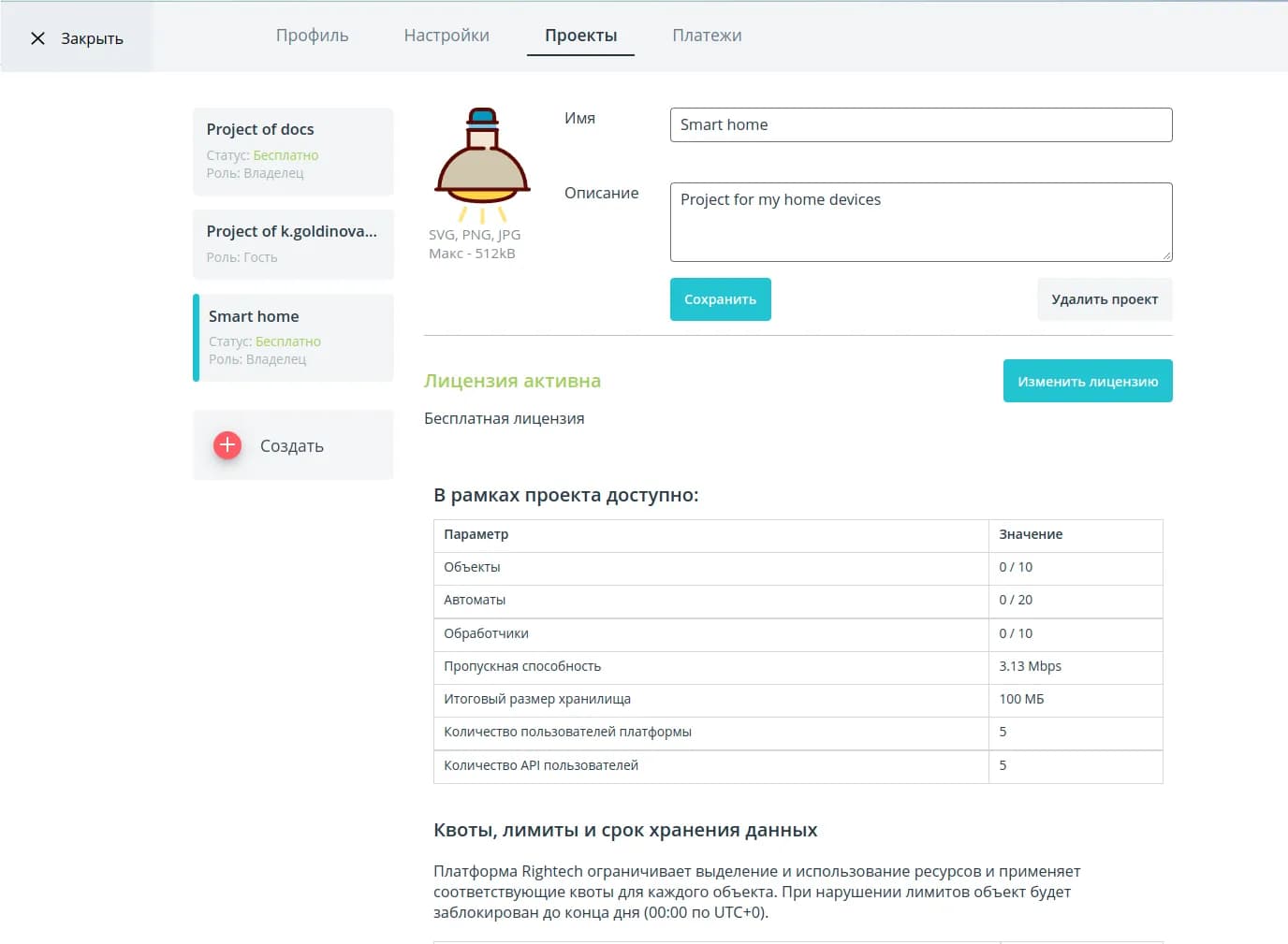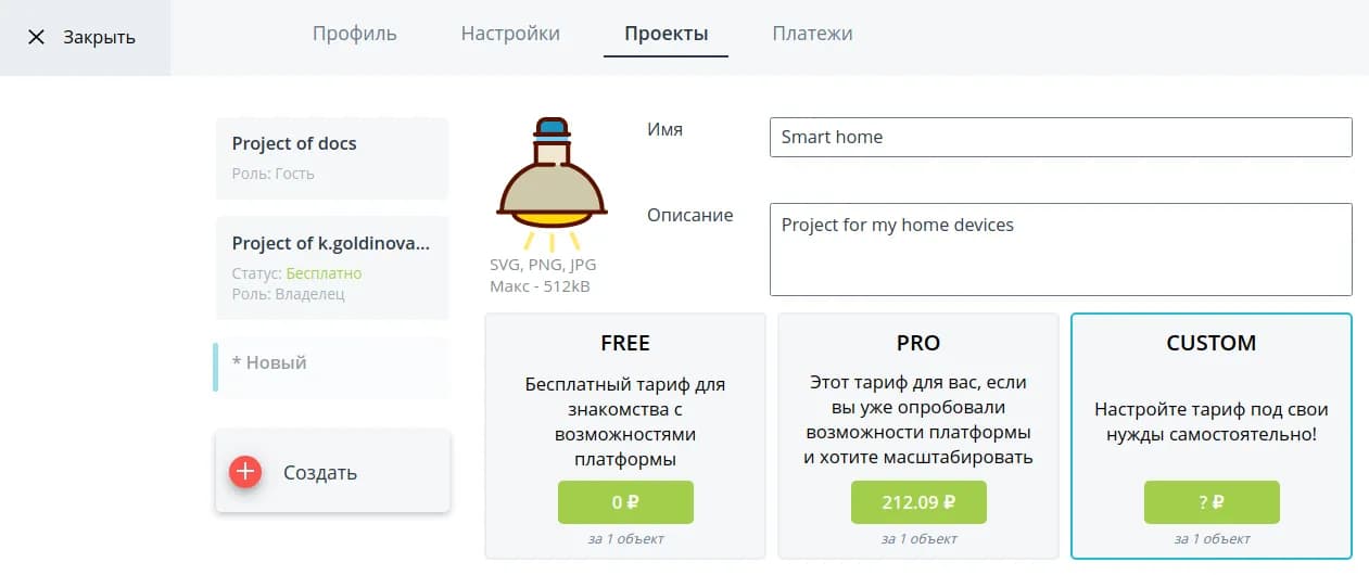 - FREE - бесплатный тариф для знакомства с возможностями платформы и реализации простых кейсов. Можно создать только два бесплатных проекта. Когда этот лимит будет исчерпан, при создании нового проекта тариф FREE сменится на на тариф BASE.